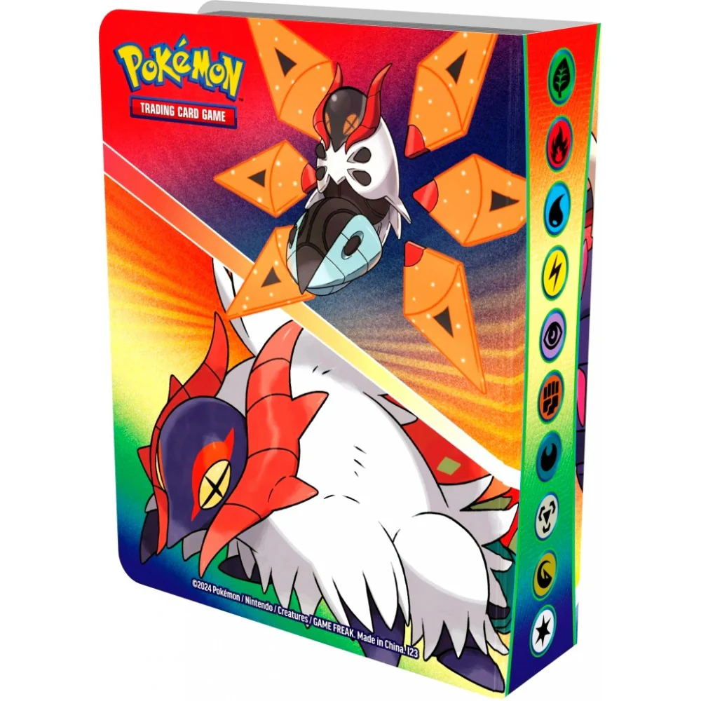 Store your cards in style! The latest version of the mini portfolio features Iron Moth & Slither Wing along with Great Tusk & Iron Treads. Each mini portfolio can hold up to sixty Pokemon TCG cards and includes one booster pack so you can start filling it straight away!