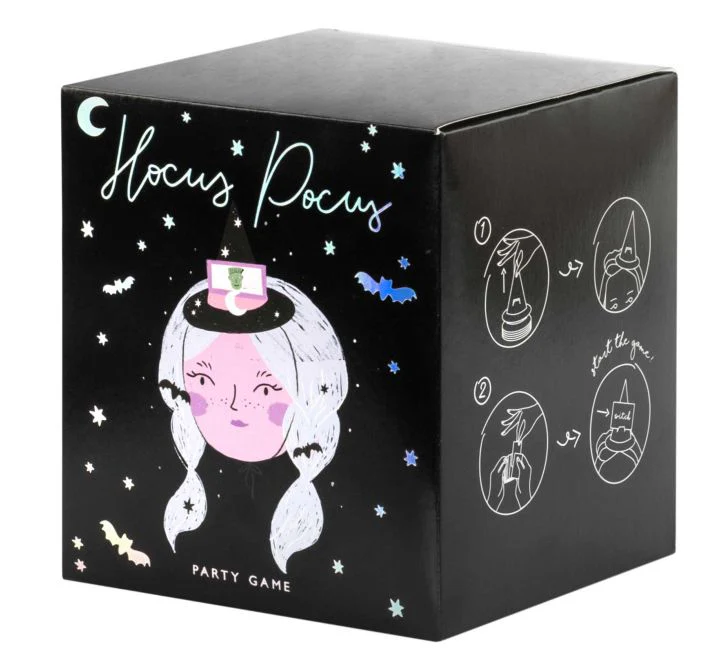 Guessing party game included 6 witch hats with elastic band and 40 cards with illustrations. Number of players: 2 - 6.