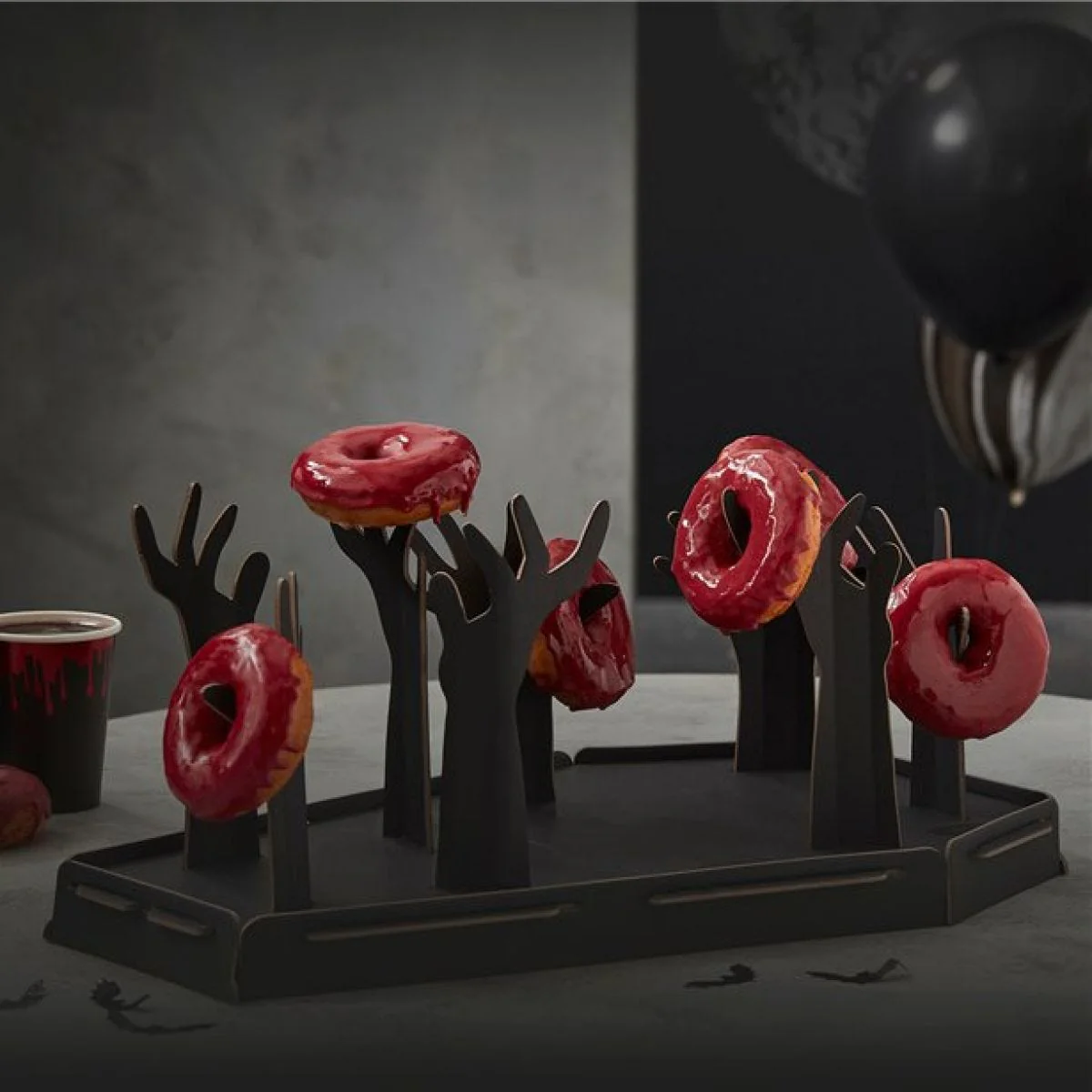Black coffin donut stand with 8 zombie hands Easy assembly