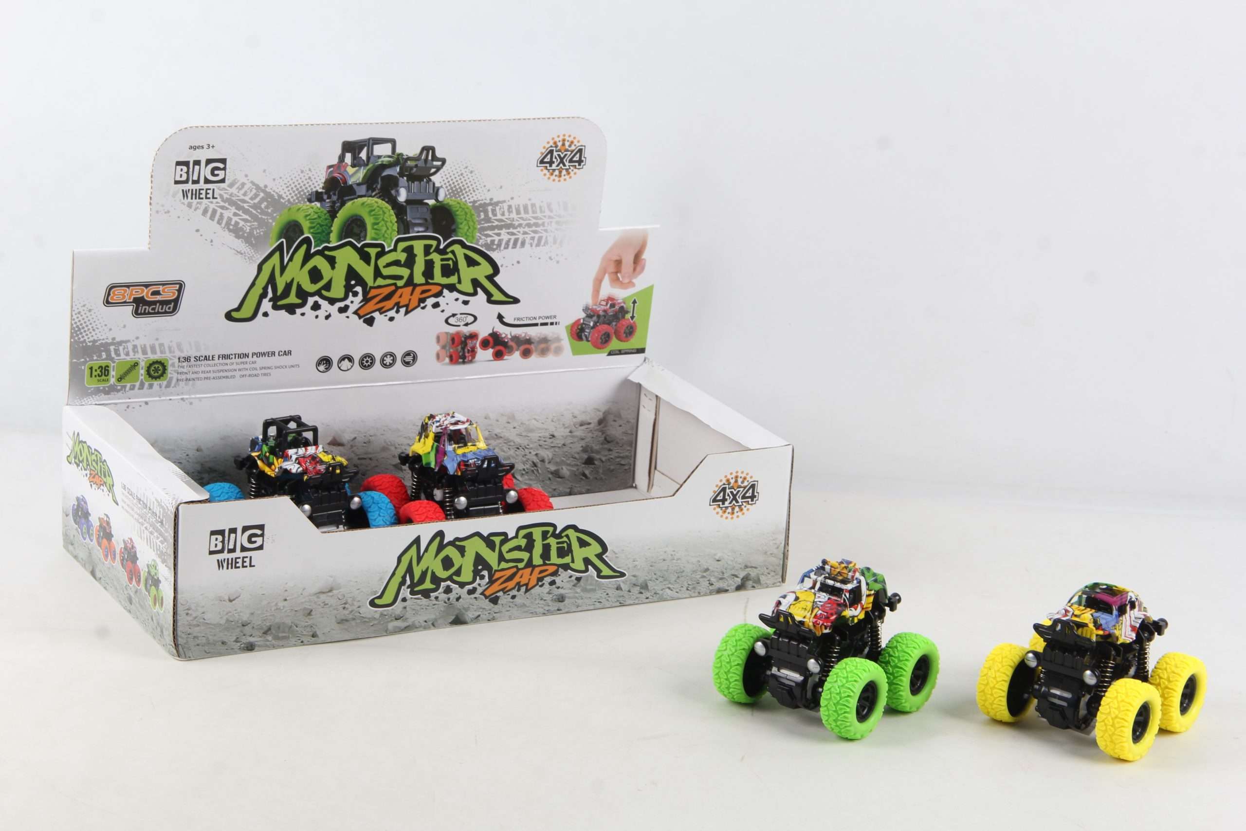 BIG WHEEL MONSTER ZAP CAR, 4X4 360 ROTATION, FRICTION POWER, COOL SPRING