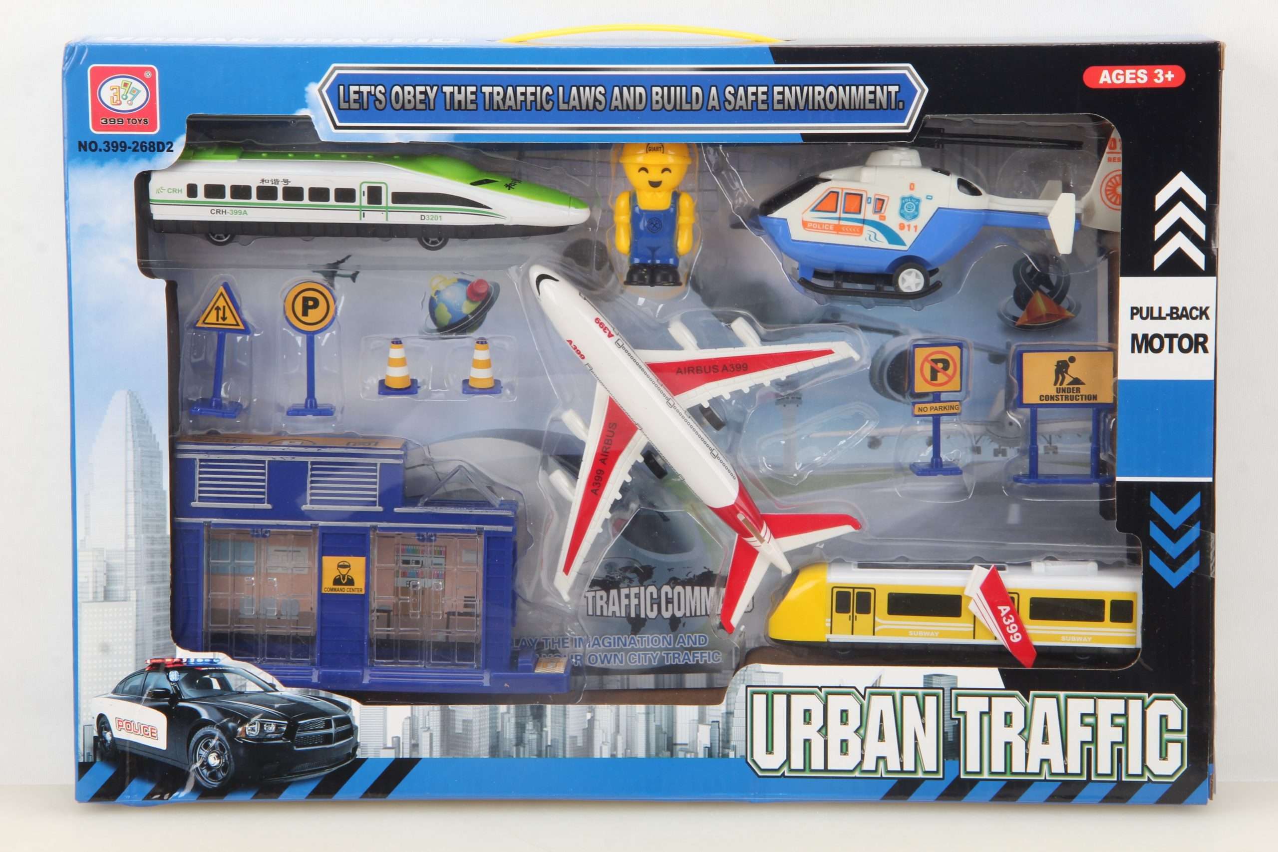 URBAN TRAFFIC VEHICLE SET WITH ACCESSORIES, PULL BACK MOTOR,