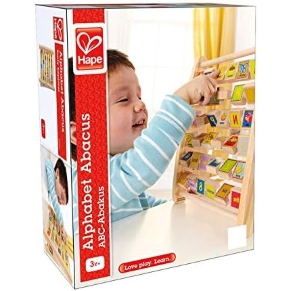 Hape Alphabet Abacus (E1002) Introduce your child to the world of letters and numbers with the Hape Alphabet Abacus. This double-sided wooden learning tool features 26 colorful letter tiles on one side and corresponding images on the reverse, providing a fun and engaging way to build literacy and vocabulary skills. With its sturdy design and vibrant illustrations, the Alphabet Abacus encourages early learning through play. It’s perfect for preschoolers beginning to explore the alphabet and simple words while also improving fine motor skills and cognitive development. Key Features: Double-Sided Tiles: Alphabet on one side, corresponding images on the other Educational Value: Helps develop early literacy, vocabulary, and motor skills Durable & Sustainable: Made from high-quality wood sourced from FSC-managed forests Safe for Children: Non-toxic, child-safe paints; meets global safety standards Specifications: Dimensions: 25. 5 x 12 x 32 cm Weight: Approx. 0. 95 kg Recommended Age: 3 years and up Materials: Wood, water-based paint, PET The Hape Alphabet Abacus is a colorful and interactive way to make early learning fun, helping kids recognize letters and sounds while enjoying hands-on play.