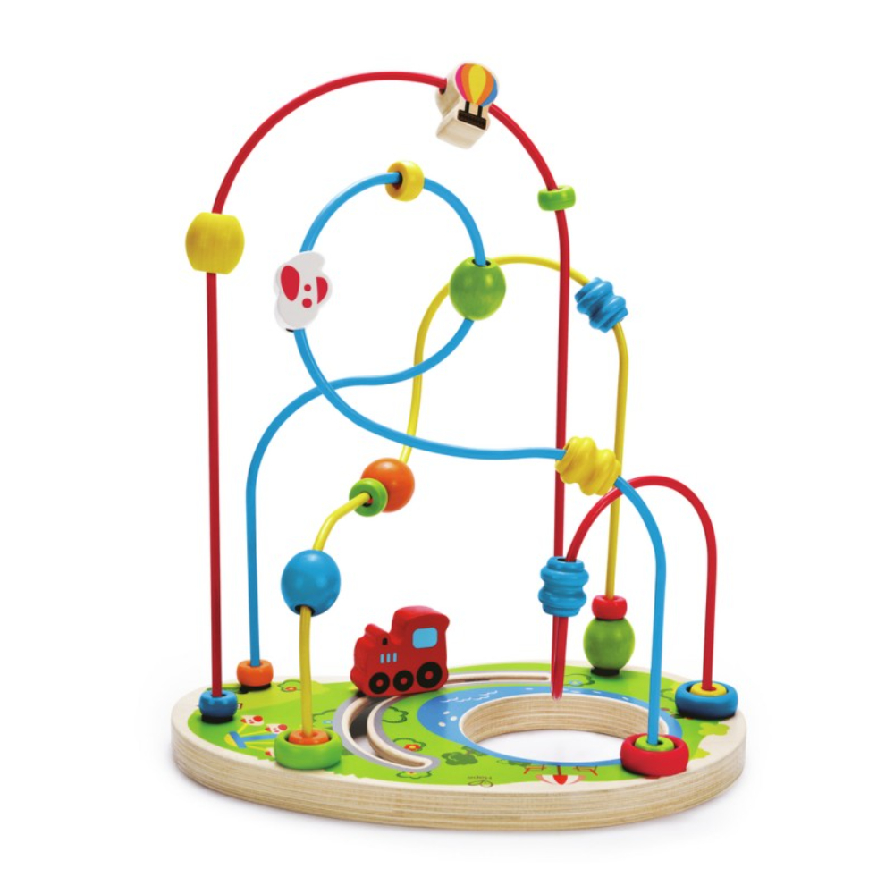 Hape Playground Pizzaz (E1811) The Hape Playground Pizzaz is a vibrant and engaging wooden bead maze designed for children aged 2 years and up. This activity center features colorful beads and rings that move along winding metal tracks, providing endless opportunities for interactive play. It’s an excellent tool for promoting fine motor skills, hand-eye coordination, and spatial awareness in young children. Key Features: Interactive Design: Includes various beads and rings that move along twisting metal paths, encouraging children to explore different routes. Educational Value: Helps develop fine motor skills, hand-eye coordination, and understanding of spatial relationships. Durable Construction: Made from high-quality wood with non-toxic, child-safe finishes, ensuring longevity and safety. Compact Size: Its size makes it suitable for home play, waiting rooms, or daycare environments. Specifications: Recommended Age: 2 years and up Dimensions: Approximately 29. 6 x 20. 6 x 35. 4 cm Weight: Approximately 0. 9 kg Materials: Wood, water-based paint, iron, ABS, PE Piece Count: 1 The Hape Playground Pizzaz offers a fun and educational experience, helping children develop essential skills through interactive play.