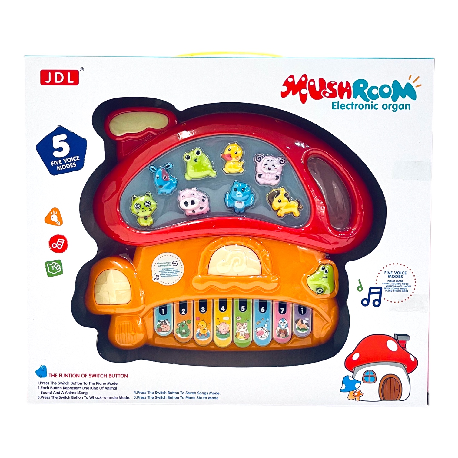 Six fun children's melodies Two play modes Teaches ABC and 123Fun melodies Auto shut-off