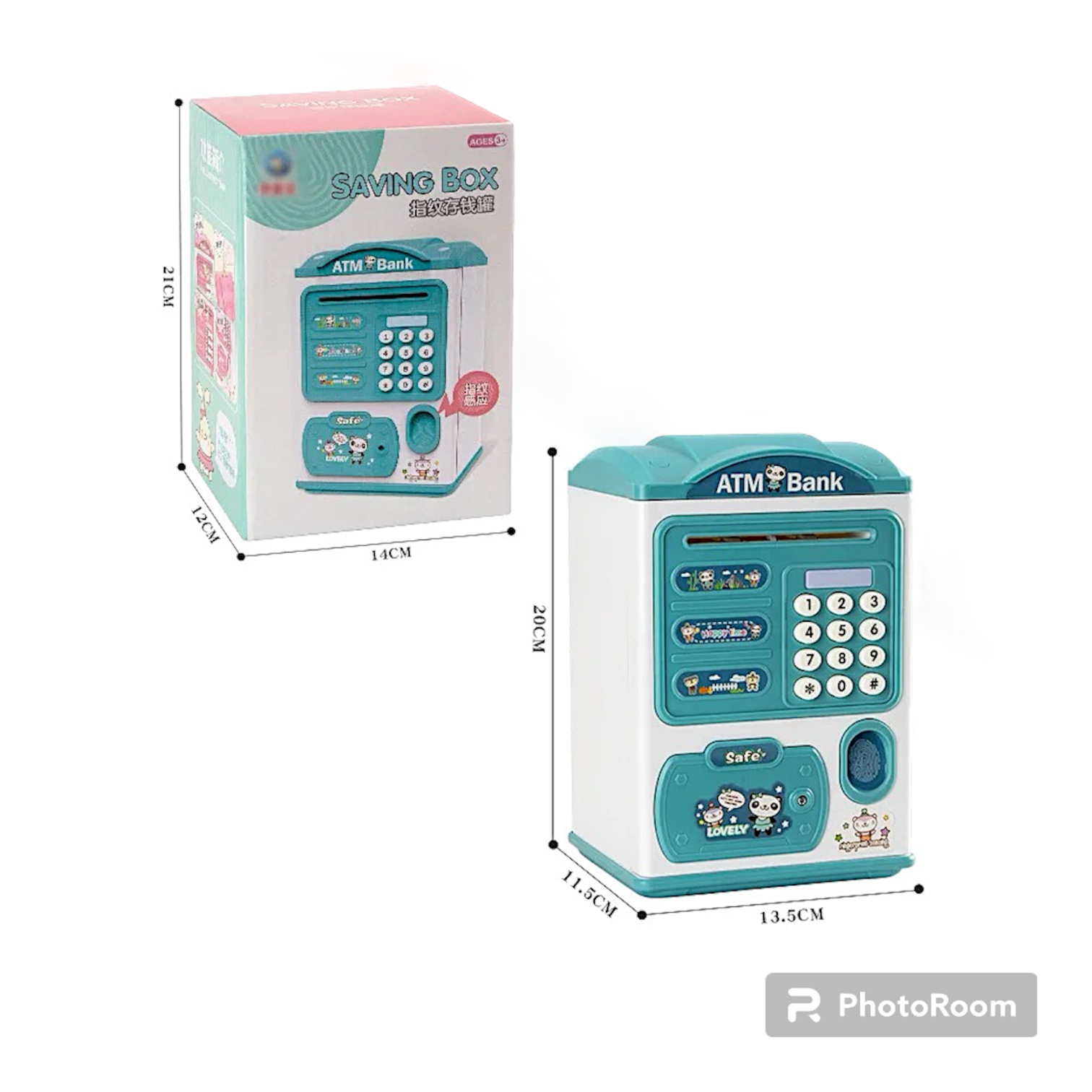 حصالة الكترونية تعمل على رقم سري و البصمة لون وردي شكل مميز تقبل العملة الورقية و المعدنية
