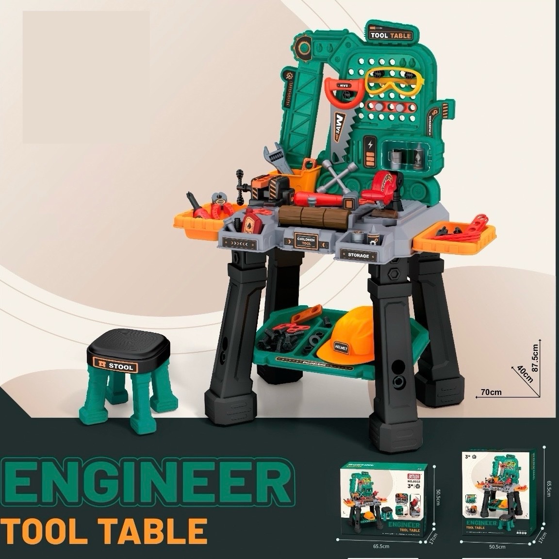 دع طفلك يبدع ويستكشف عالم النجارة بأمان مع لعبة طاولة نجّار متكاملة مكونة من 87 قطعة! تتضمن هذه المجموعة طاولة عمل واقعية، مقعد مريح، وأدوات نجارة آمنة ومحاكاة لأدوات حقيقية، لتمنح طفلك تجربة لعب تفاعلية مليئة بالمرح والتعلم. 📦 محتويات المجموعة : طاولة عمل نجارة بتصميم جذاب مقعد صغير مريح يناسب الأطفال 87 قطعة متنوعة تشمل: مفكات، مطرقة، منشار، مفتاح ربط مسامير، براغي، ألواح تركيب أدوات قياس وتثبيت درج أو مساحة تخزين للأدوات 🌟 المميزات : تصميم واقعي يحاكي ورشة النجارة الحقيقية جميع القطع مصنوعة من مواد آمنة وغير حادة تشجع على اللعب التخيلي وتمثيل الأدوار تساعد الطفل على التفكير المنطقي والتخطيط سهلة الفك والتركيب والتخزين 🧠 الفوائد التعليمية : تنمية المهارات الحركية الدقيقة تعزيز التركيز والصبر تطوير القدرات الإبداعية والبنائية تشجيع حب الاستكشاف والعمل اليدوي 👶 الفئة العمرية المناسبة : 3 سنوات فما فوق