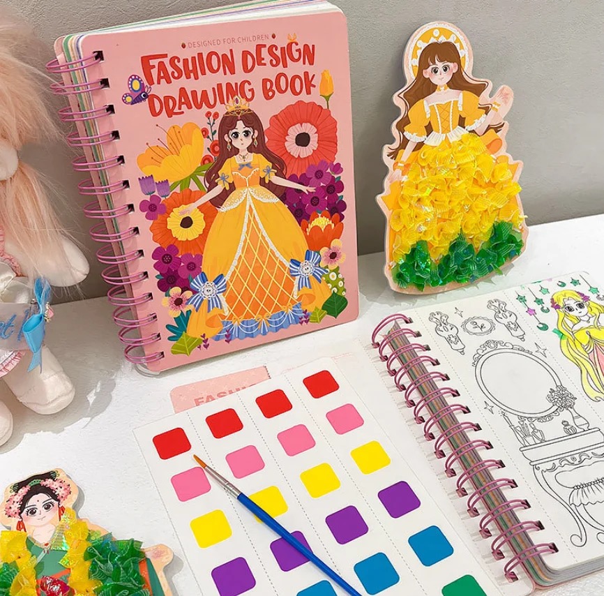 دفتر الاحلام مجموعة من لوحات الرسم و لوحات تزيين القماش مع مجموعة من الالوان و ادوات التلوين dream book