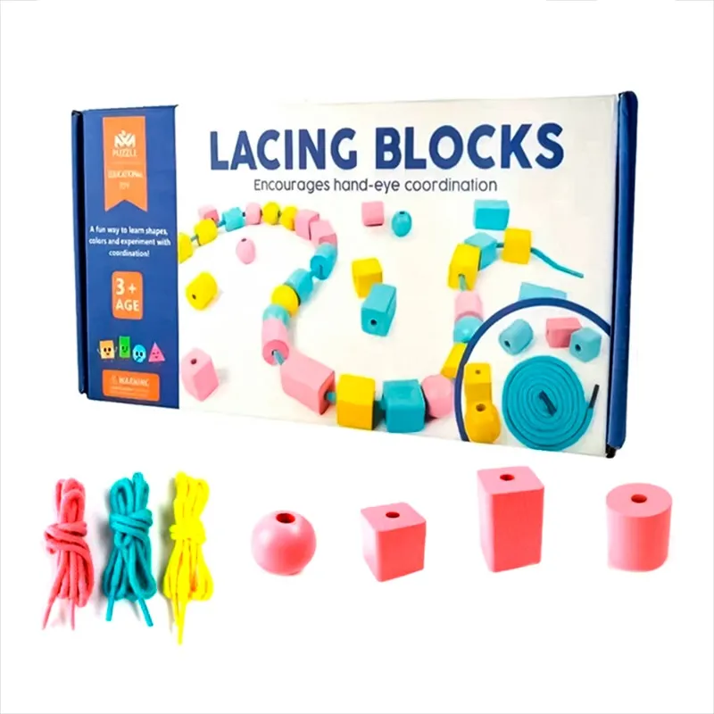 هذه لعبة خرز وخيوط للأطفال الصغار. تحتوي كل مجموعة على 3 أربطة قطنية بطول 100 سم، ودليل يدوي و36 خرزة خشبية للأطفال الصغار، كما تأتي خرزات الأربطة لدينا بثلاثة ألوان زاهية و4 أشكال. من خلال اللعب بهذه الخرزات الملونة، سيتعلم الأطفال الأشكال والألوان والأنماط والفرز وتطوير المهارات الحركية الدقيقة. ستوفر لعبة الأربطة الخاصة بنا ساعات من الترفيه والمرح والتعلم في المنزل أو في الفصل الدراسي أو أثناء التنقل.
