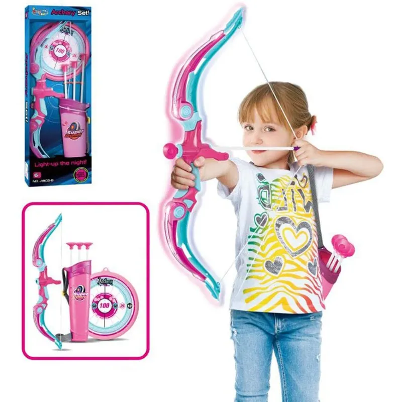 Your child will love this large Bow & Arrow playset that comes with 3 arrows In addition. The packaging has a cut out target that they can hang up for target practice. They will have hours of fun and imaginative play with this toy.
