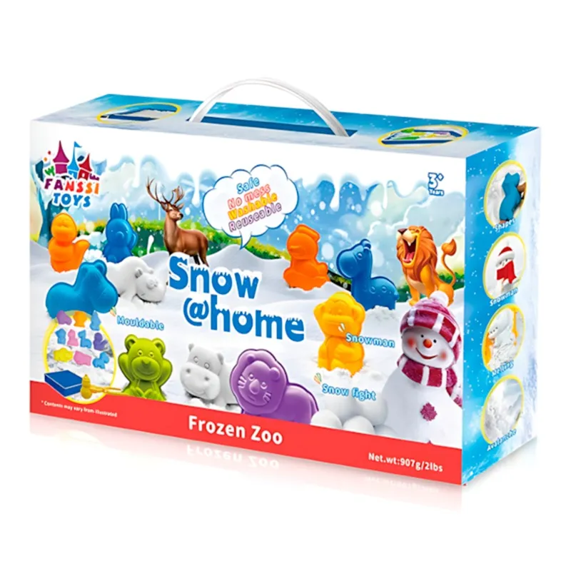 Play snow at home anytime. Set Contents: 907g snow, 10 animal molds, 1 clamp mold, 1 tray with cover. With this toy, children can develop their imagination, their creative side.