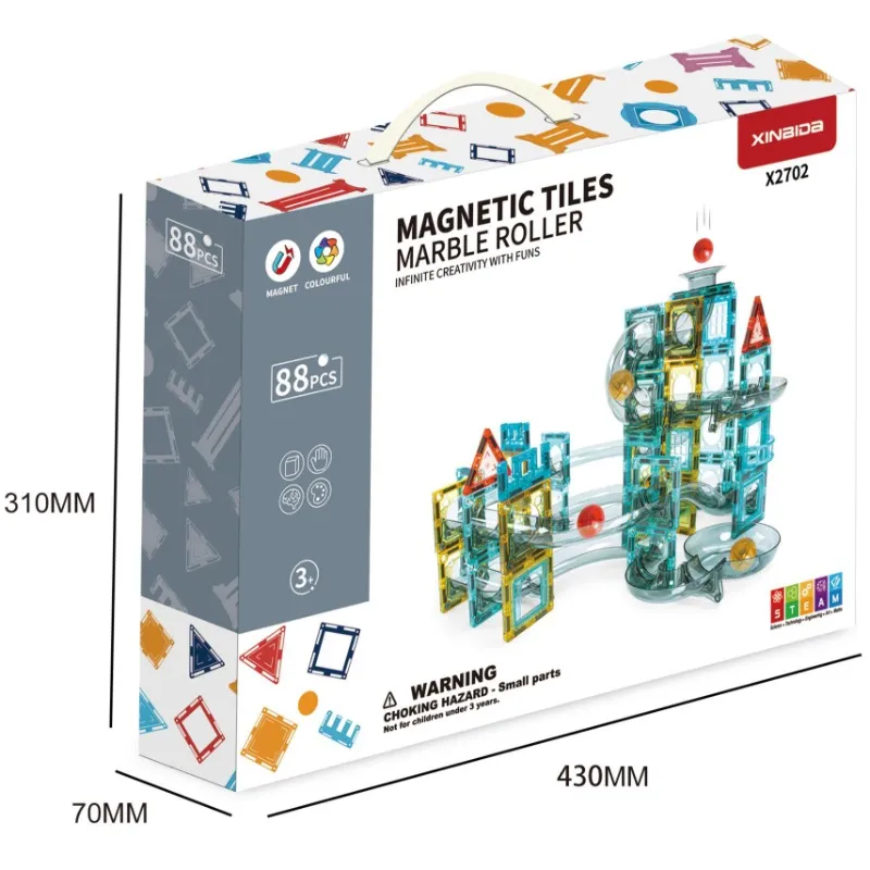 These magnetic building blocks come in different shapes and sizes. The set includes 88 pieces. Helps teach your child design, math, physics and engineering skills. Development of fine motor skills. Enhance visual-spatial awareness and develop imagination and creativity.