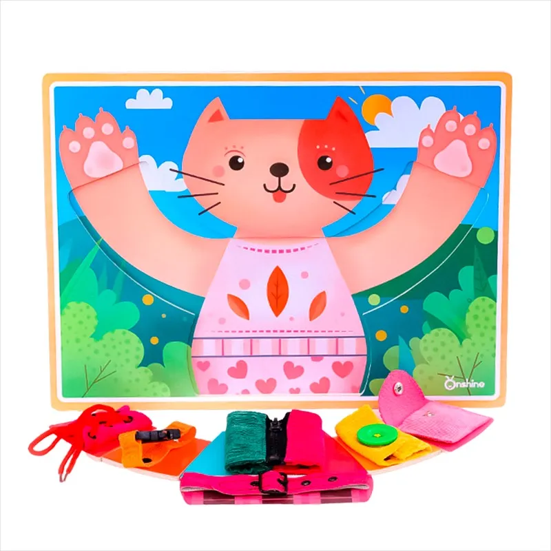 Comes with a large cat board and six small dress boards, allow kids can dress the cute cat. Exercise the baby to learn the ability to dress independently and hands‑on ability. Beautiful colors can catch your baby’s eyes and familiarize them with color combinations. Bright‑colored and contrasting patterns can promote the development of kids’ vision and intelligence.