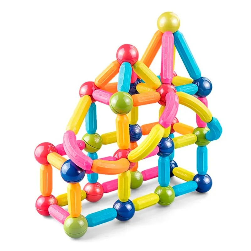 Magnetic Structure There are 84 parts in the educational magnetic stick set: 12 curved rods, 24 long rods, 24 short rods, and 24 balls. It is possible to combine a huge number of cubes into various shapes. Children’s inventiveness, practical skills, and creativity can all be enhanced by the magnetic tape toy. With magnetic building blocks, kids may construct a variety of models, including houses, cars, animals, and anything else they find amusing. Appropriate for children three years of age and up.