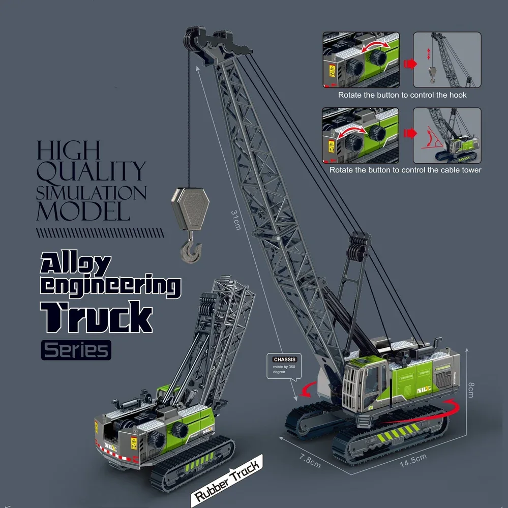 Simulation model alloy engineering truck1. High quality & great details, constructed out of metal and high-quality ABS plastic, so that you will be able to experience the reality of the engineering construction toy. Function: forward and back, turn left and turn right, 360 Degrees rotation for work station, The arm and bucket can rise Up and fall down freely. 2. The Metal Die-cast Excavator looks like a real-life heavy-duty construction vehicle you typically see on a construction site with extremely detailed exterior