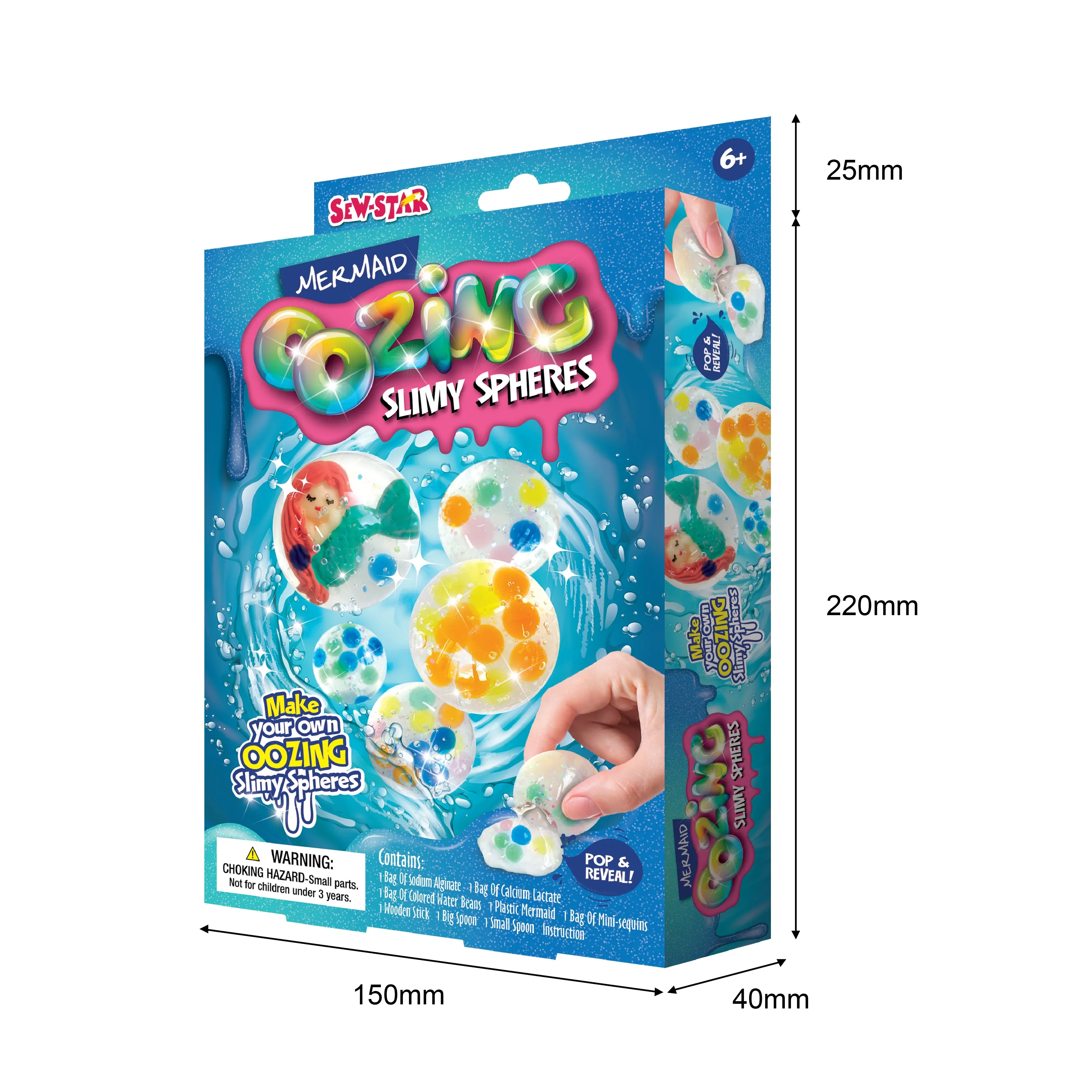 - Combine simple ingredients to create oozing slimy spheres that are fun to squish, squeeze and pop. - Is a fun, hands-on way to introduce kids to chemistry and express creativity. - Recommended for ages 6 and up. - Includes: Maker, Glitter Packet, Tempra Paint 3 colors, Plastic Spoon, Mixing Stick, ingredients, and Easy-to-Follow Instructions. - Age Range: 6 years & up.