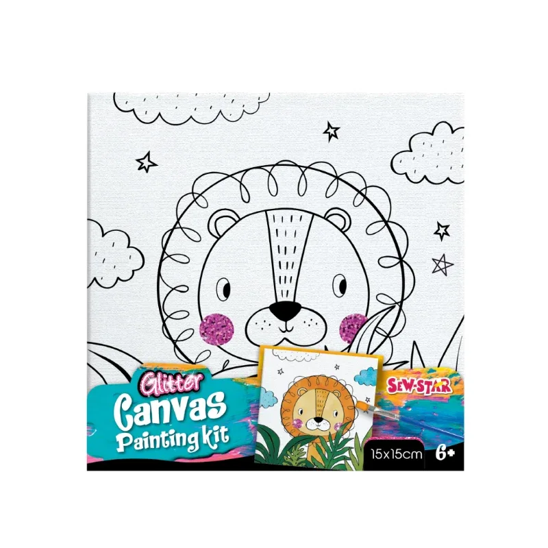 Introducing the Glitter Canvas Painting Kit - Unicorn by SEW-STAR, a delightful DIY craft kit that allows creative kids aged 6 and above to create sparkling and enchanting unicorn artworks. This kit includes all the essentials needed for glitter canvas painting, including a high-quality canvas, 5 vibrant paint colors, and a brush. With these materials, children can embark on a magical artistic journey and bring their own unicorn masterpiece to life. The Glitter Canvas Painting Kit - Unicorn offers a fun and engaging crafting experience. Children can use the provided paint colors to bring vibrant hues to their unicorn artwork. They can explore their creativity by mixing colors, adding intricate details, and personalizing their unicorn with whimsical touches. The highlight of this kit is the addition of glitter. After painting the unicorn, children can sprinkle the glitter onto the wet paint, creating a mesmerizing sparkle effect. The glitter adds a touch of magic and transforms their artwork into a dazzling masterpiece that will captivate and delight. Once completed, the glitter canvas painting becomes a stunning decoration or a cherished gift. Children can proudly display their unicorn artwork on the included canvas, adding a touch of whimsy and sparkle to any space. The Glitter Canvas Painting Kit - Unicorn not only encourages creativity and artistic expression but also provides a sense of accomplishment and pride in creating something beautiful.