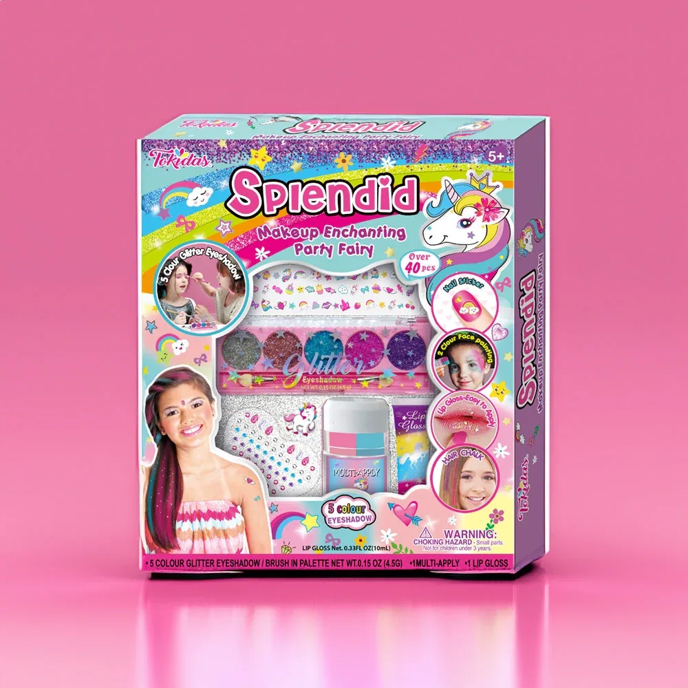 5 Colour Glitter Eyeshadow / Brush in Palette. 1 Multi-Apply ,1 Lip Gloss, 1 Sheet of Nail Stickers. 1 Sheet of Diamonds, 1 Sheet of Diamonds ,1 Ring