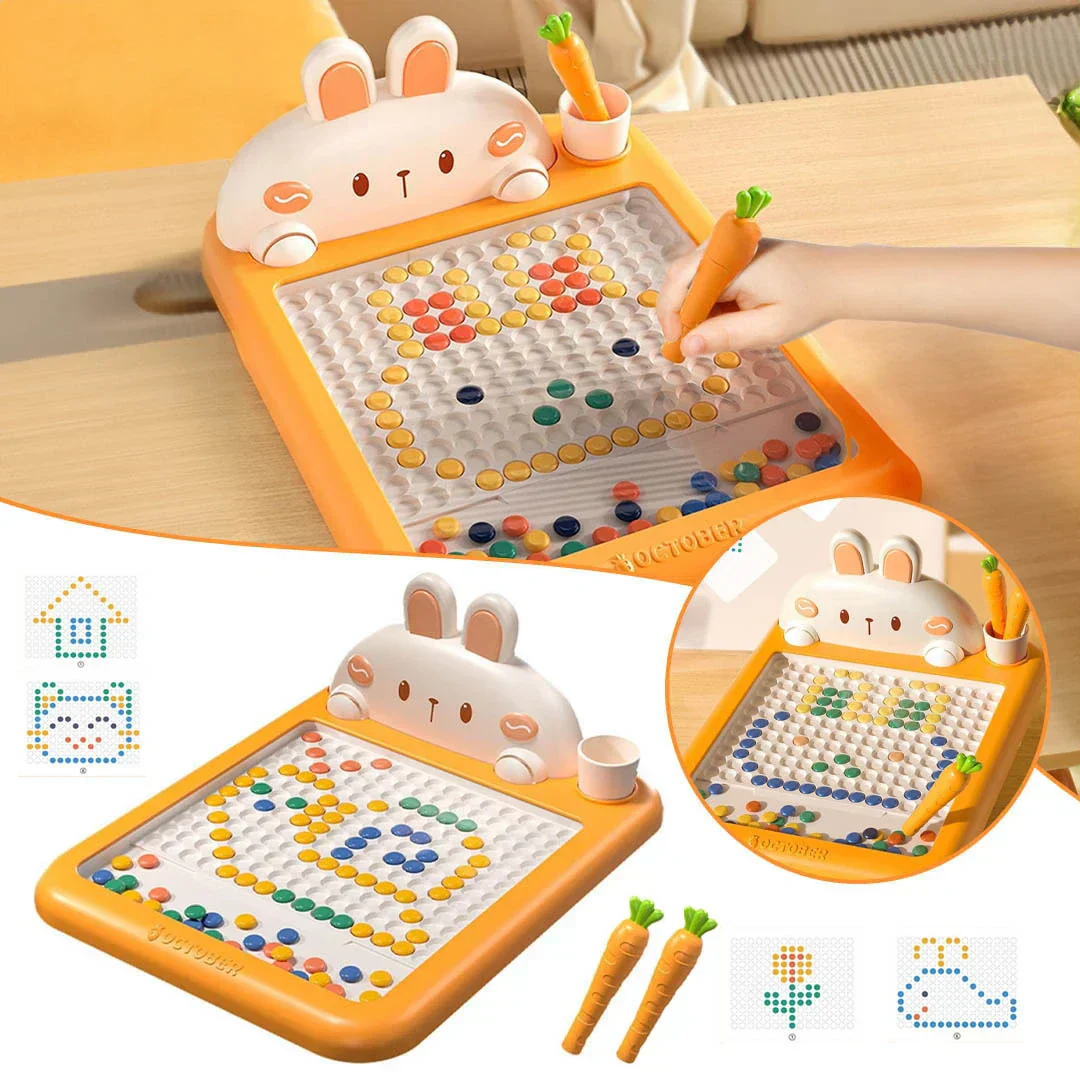 لوحة رسم مغناطيسية على شكل أرنب هذه اللوحة الجذابة تدعو طفلك للانطلاق في مغامرة ملونة تنبض الخرزات المغناطيسية النابضة بالحياة بالحياة على لوحة الرسم، بتوجيه من خيالهم الخاص أو من خلال توفير 10 بطاقات نمطية الإمكانيات لا حصر لها، من تقليد الشخصيات المرحة إلى إنشاء المناظر الطبيعية الساحرة