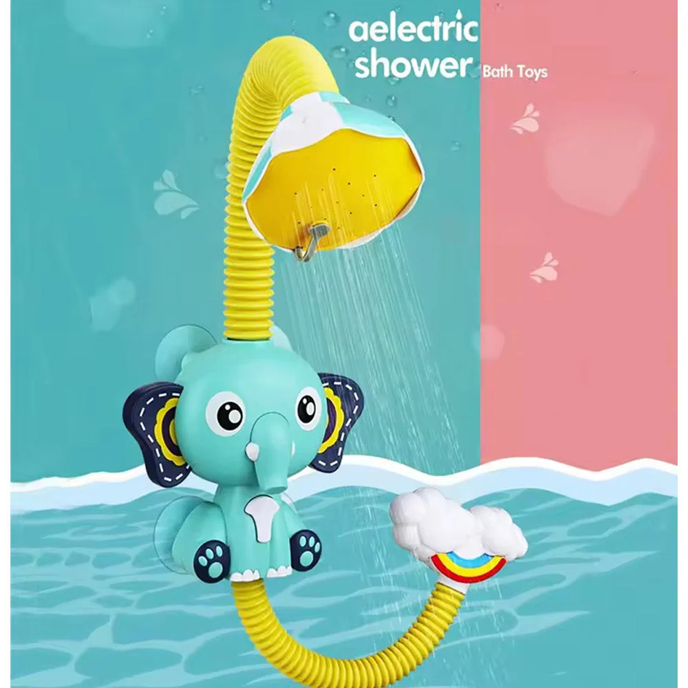 ملخص لعبة حوض استحمام الطفل، لعبة حمام الماء الكهربائية على شكل فيل للأطفال البنات Cute Electric Elephant Water Pump with 360 Degrees Adjusted Hose Baby Bath Shower Head Spout Rinser Kids Shower Toys