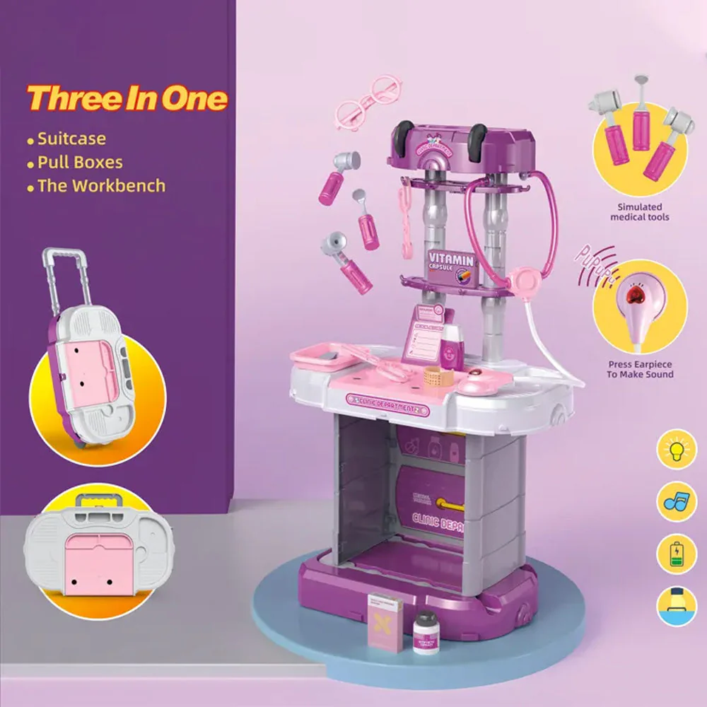حقيبة عربة محمولة 3 في 1 لألعاب طبية