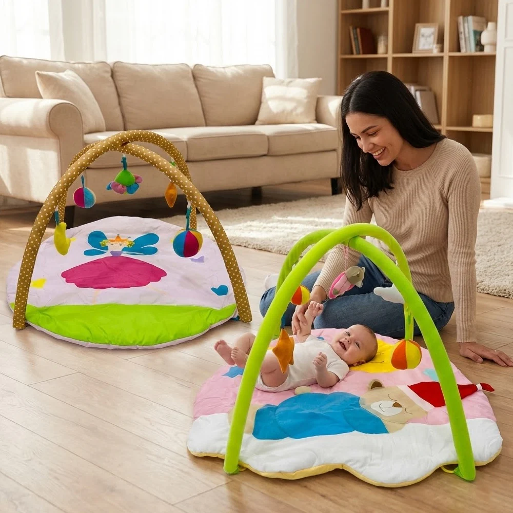 بساط ألعاب ناعم للرضّع مع أقواس وألعاب معلّقة – تصميم مريح ومحفّز من عمر 0+ الوصف الاحترافي الجاهز: امنحي طفلكِ وقت لعب آمن وممتع مع بساط الأنشطة الفاخر للرضّع، المصنوع من خامات ناعمة ومريحة مناسبة لبشرة الأطفال الحساسة. يأتي البساط بتصاميم لطيفة مثل الدبدوب النائم أو الجنية وبألوان مبهجة تجذب انتباه الطفل وتشجّعه على الاستكشاف. ⭐ مميزات المنتج: مناسب من عمر 0+ للّعب والاستكشاف الآمن. قماش فائق النعومة يوفر راحة كبيرة أثناء الاستلقاء أو الزحف. أقواس قابلة للفك والتركيب بسهولة. ألعاب معلّقة محفّزة للحواس: كرات قماشية ملونة نجمة قماشية ألعاب لينة تصدر حركات وأصوات خفيفة يساعد على تطوير المهارات:✔ المهارات الحركية✔ مهارات الإمساك واللمس✔ تنمية النظر والتتبع البصري خفيف وسهل الحمل داخل المنزل أو عند السفر. آمن تمامًا للطفل وخالٍ من الحواف الحادة. ⭐ المقاسات: مساحة واسعة مناسبة للطفل مع حواف مرنة توفر راحة أكبر أثناء اللعب. ⭐ التصاميم المتوفّرة: تصميم الدبدوب النائم (ألوان: وردي – أبيض – أصفر – أزرق) تصميم الجنية (ألوان: وردي – أخضر – أزرق – متعدد الألوان)