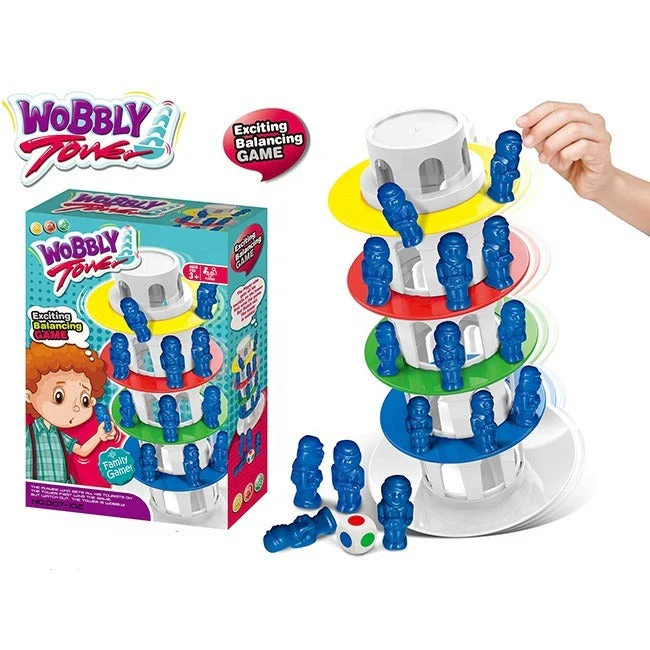 لعبة التوازن المثيرة "البرج المتذبذب برج متذبذب لعبة موازنة مثيرة. يفوز اللاعب أولاً بجميع السياح على البرج. لكن احذر، البرج متذبذب! يضيف برج متذبذب لمسة جديدة وممتعة على لعبة موازنة البرج الكلاسيكية! قم برمي النرد، وانظر إلى اللون الذي يظهر، ثم أزل مكعبًا من هذا اللون. احذر من سقوط البرج. هذه لعبة يمكن للأطفال والكبار لعبها معًا، ولا تتطلب تعلمًا ولا تصبح قديمة أو مملة أبدًا. القواعد بسيطة بما يكفي للعب بها جميع أفراد الأسرة: ما عليك سوى تكديس الأصابع في برج دون تركه يسقط. إنها ممتعة لجميع الأعمار أيضًا، حيث يتم سحب بعض المكعبات من أسفل البرج لجعله أطول. من سيجعل البرج يسقط، إنها رائعة لأمسية اللعب العائلية.