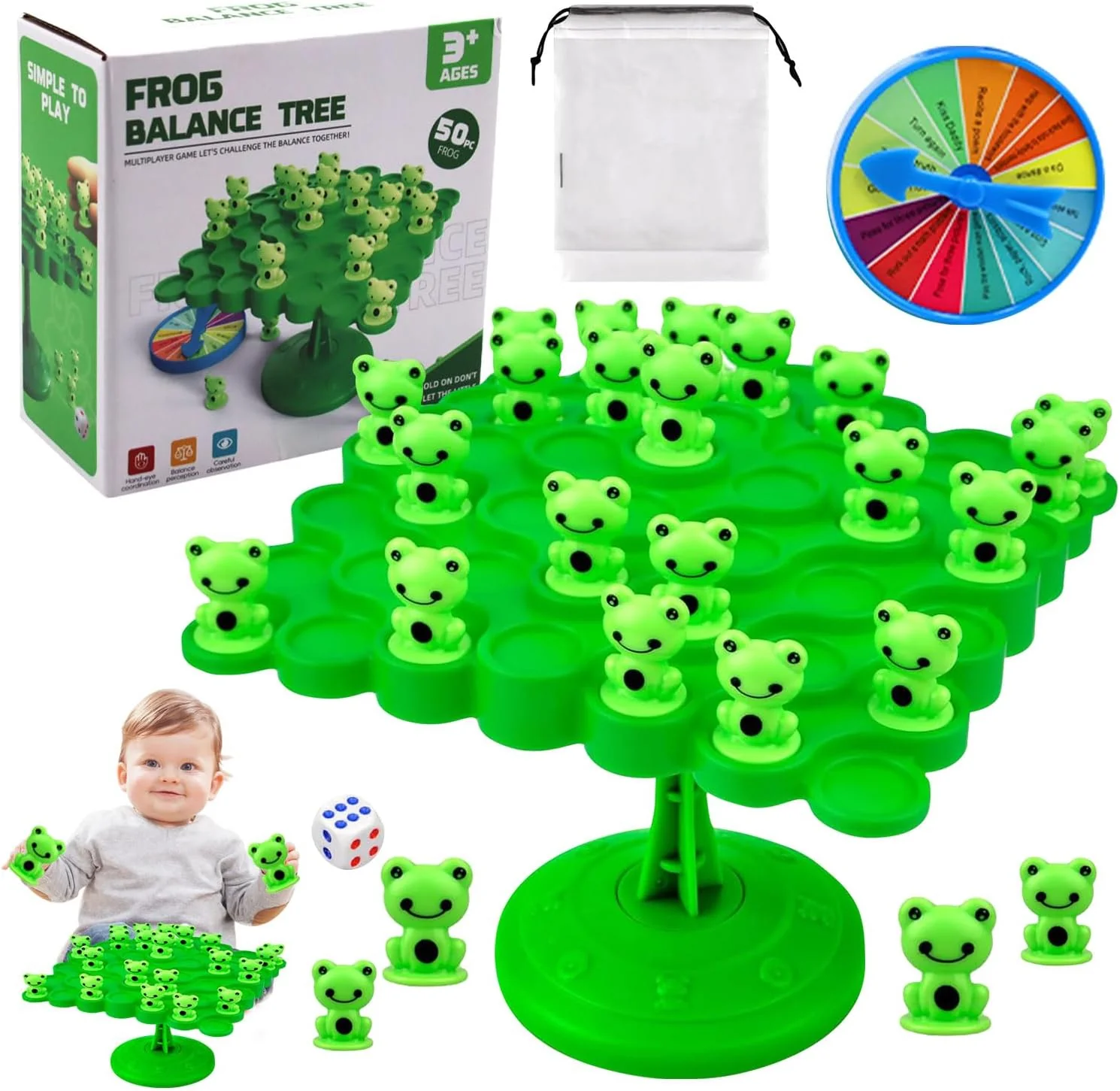مواد موثوقة: لعبة توازن الضفدع للأطفال مصنوعة من مادة ABS آمنة وغير سامة ولا طعم لها، وهي متينة ومصنوعة بشكل جيد ولا تترك أي نتوءات، لذلك يمكن للأطفال الاستمتاع ويشعر الآباء بالراحة. بدلة فاخرة: لعبة عد توازن الضفدع. تتضمن العبوة 1 × شجرة توازن الضفدع، 1 × حقيبة تخزين، 1 عبوة من الضفادع (50 قطعة)، 1 × لوحة جزاء، 1 × مكعب، توجد حقيبة تخزين، لذا لا تقلق بشأن هذه اللعبة الصغيرة التي تجعل الغرفة فوضوية. سهلة اللعب: يمكن للاعبين اختيار كميات مختلفة وفقًا لأفكارهم الخاصة ووضعها على مساحات فارغة أخرى على لوحة التوازن للحفاظ على توازن شجرة توازن الضفدع، أو رمي النرد ووضع العدد المقابل من الضفادع وفقًا لعدد النرد لكل منها، حتى المبتدئين يمكنهم إتقان اللعبة بسهولة في دقيقة واحدة. لعبة رياضيات ممتعة: تساعد لعبة توازن الضفدع الرياضياتية على تطوير الأرقام والمهارات الحركية والتفكير المنطقي ومهارات حل المشكلات لدى الأطفال، حتى يتمكن الأطفال من تعلم الرياضيات في الألعاب، وإثارة اهتمام الأطفال بالرياضيات أثناء اللعب. تعزز العلاقة بين الوالدين والطفل: عندما يلعب الآباء والأطفال هذه اللعبة معًا، لعبة توازن الضفدع، يمكن خلق علاقة حميمة، وهي مناسبة للأطفال والكبار وتجعل وقت فراغنا أكثر متعة، والاستمتاع بوقت لعب عائلي جيد معًا.