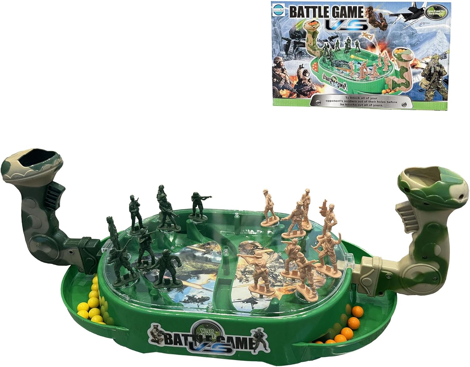 تركيب سهل للغاية! قم بتركيب المقبض واملأه بالرصاص، وصوب وأطلق النار على رجال جيش خصمك. اللاعب الذي لديه آخر شخص يقف يفوز! لا تحتاج إلى بطاريات! هذه اللعبة رائعة للألعاب الداخلية والحديقة وألعاب التخييم. يحب الأطفال هذه كهدية للكريسماس أو هدية عيد ميلاد أو لأي سبب آخر يجعلك تبحث عن شراء هدية. يمكن لهذه اللعبة تحسين التنسيق بين اليد والعين والتركيز وتحسين مهارات التفاعل. ستلاحظ أنها لعبة تنافسية ممتعة للغاية تتضمن الاستراتيجية والمهارة والحظ! طريقة رائعة لإبقاء أطفالك مستمتعين. مصنوعة من البلاستيك المتين، ناعمة وذات جودة عالية. يمكنها تحمل التلف الناتج عن الاستعمال من جميع الأعمار. إنها لعبة رائعة لجميع الأعمار وتوفر الكثير من المرح. لعبة عائلية رائعة ستبقي الأطفال مستمتعين مع إشراك الأطفال الأكبر سنًا والبالغين الذين يرغبون في الانضمام إليها. تتضمن اللعبة لوحة الألعاب، و16 رجلاً من الجيش وقاذفتين بمقبضين و20 كرة تصوير.