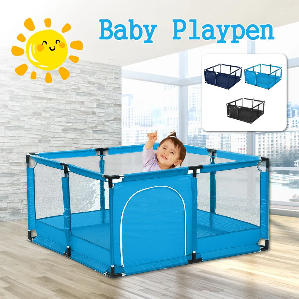 حظيرة لعب كبيرة للأطفال، مركز أنشطة داخلي وخارجي للأطفال المميزات: 1. قماش أكسفورد عالي الجودة، آمن للأطفال. 2. باب بسحاب يمنع الطفل من الجري خارج المنزل. 3. يوفر مساحات أكبر لطفلك للعب والزحف والمشي. 4. تصميم شبكي ناعم وجيد التهوية يوفر رؤية واضحة. 5. لوح ارتفاع علمي يبلغ حوالي 66 سم/25. 98 بوصة، يساعد الأطفال على تعلم المشي. المواصفات: اللون: أزرق، أزرق داكن، أسودالخامة الرئيسية: قماش أكسفورد، فولاذالأبعاد: الطول 126 سم × العرض 126 سم × الارتفاع 66 سم/الطول 49. 61 سم × العرض 49. 61 سم × الارتفاع 25. 98 بوصة