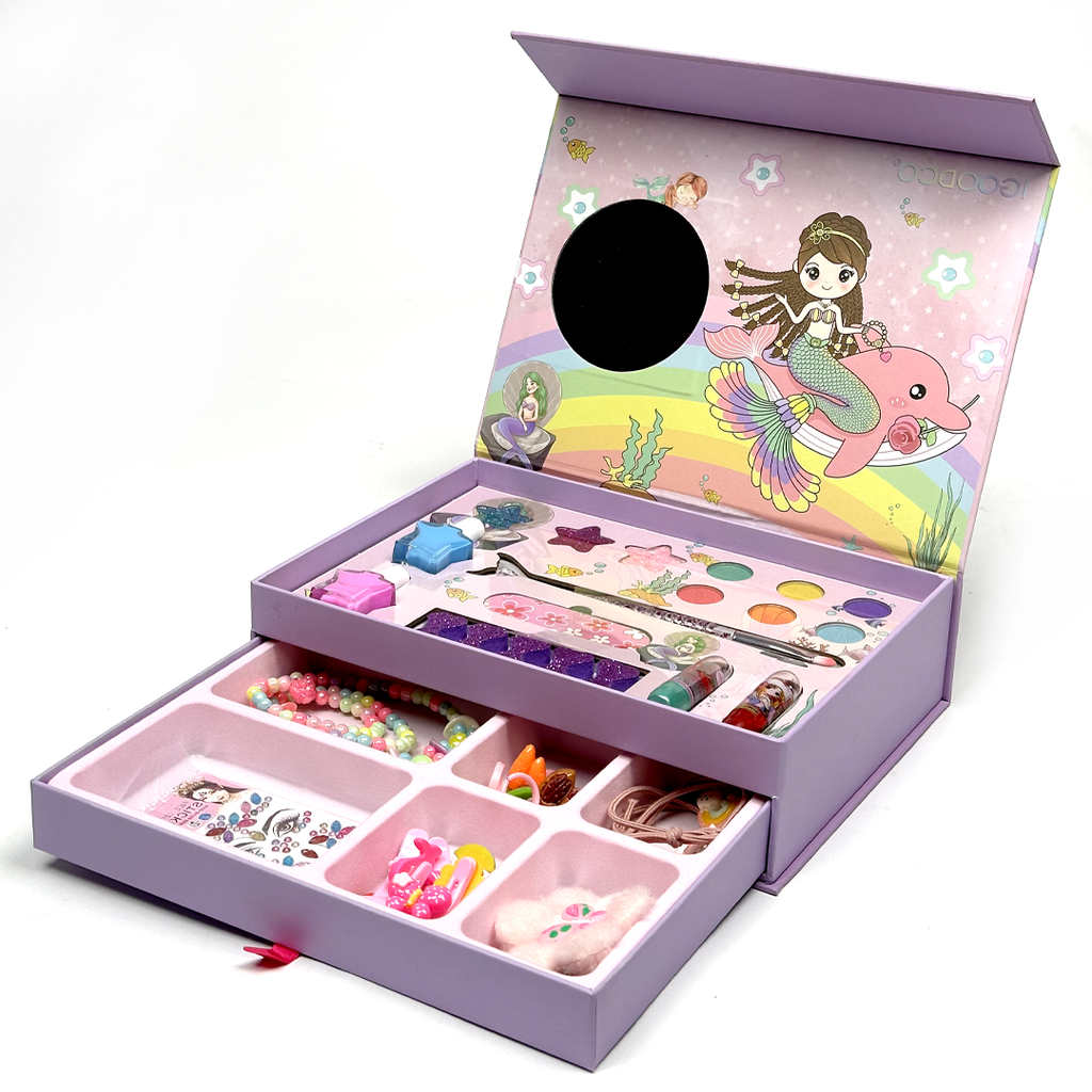 بوكس المجوهرات و الميكابمناسبة للاطفال و البالغين تأتي مجموعة من الميكاب الحقيقيمع مرآة امامية داخل البوكسمع مجوهرات للتزين الوان رائعة واشكال مميزة