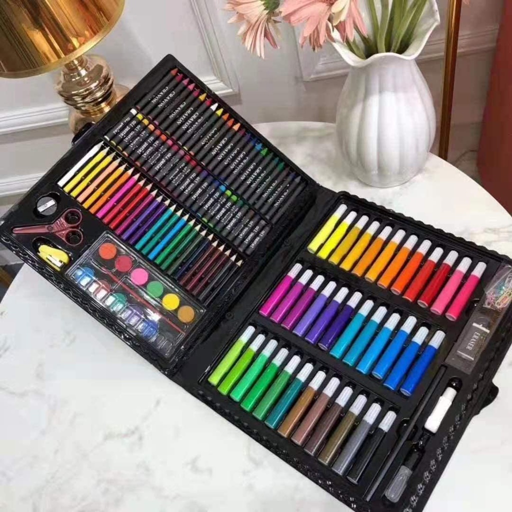 علبة ألوان 150 قطعة علبة تحمل جميع المستلزمات الفنية وتحافظ عليها مرتبة ومنظمةتحتوي علي: 36 قلم الوان24 الوان مائية 24 الوان خشبية 24 الوان شمع12 الوان زيتيةمسطرةفرشاة قلم رصاص دبابيس مكتبممحاةمبراةجلوهدية رائعة توفر هذه المجموعة الفنية ساعات من المرح الفني وتقدم هدية رائعة للأطفال والكبار على حد سواء.