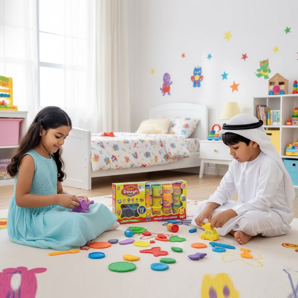 صلصال الوان مختلفة عدد 12 حبات جميع الادوات موجودة في كرتون واحد