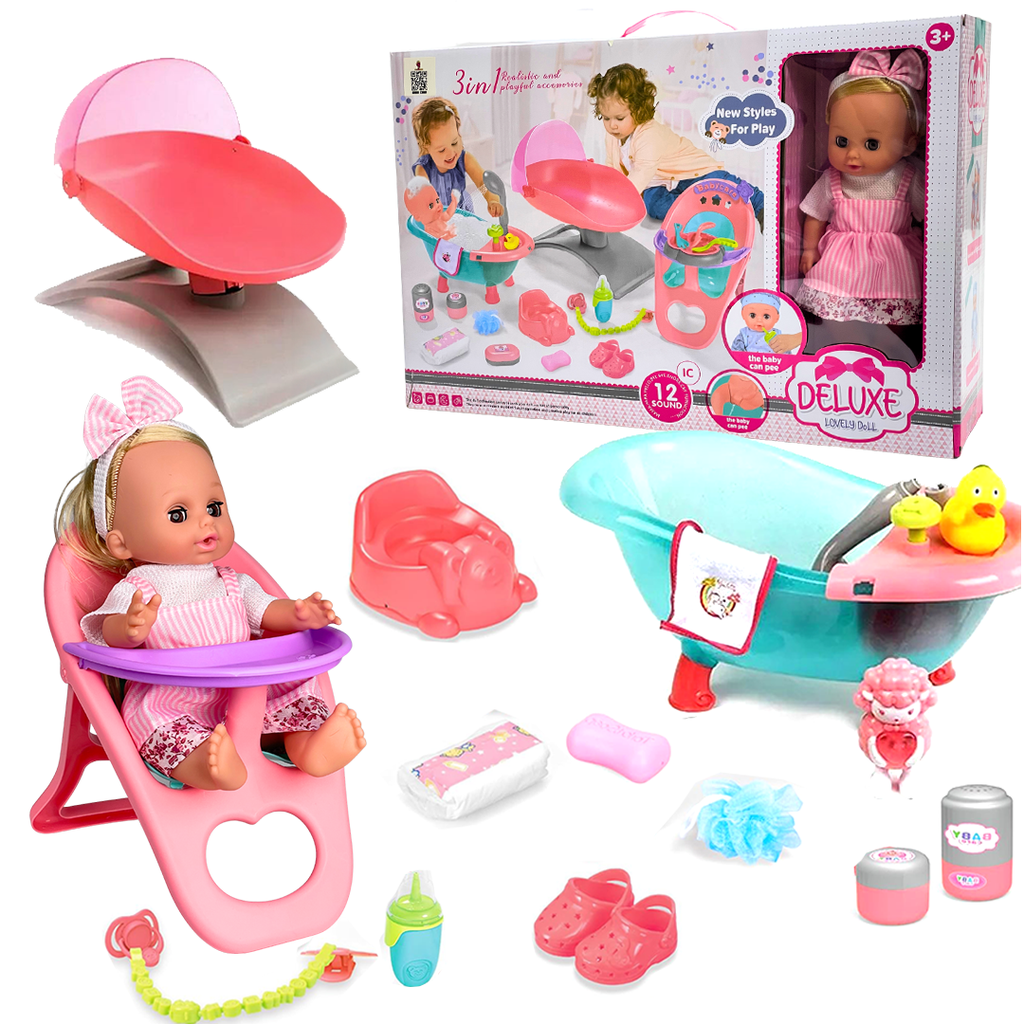 تمتع بتجربة فريدة مع العروسة التفاعلية العروسة مصنوعة من مواد سيليكونية وفينيل ناعمة على الجسم بالكاملمما يجعلها لعبة لطيفة ومريحة للعب. تأتي مع مجموعة من الملحقاتبما في ذلك حوض استحمام مشترك وكرسي هزاز وكرسي أطفال. تمتاز العروسة بالقدرة على إصدار أصوات تفاعلية مثل صوت ماما وباباوحتى صوت البكاء، مما يضيف الواقعية والمرح إلى تجربة اللعب.