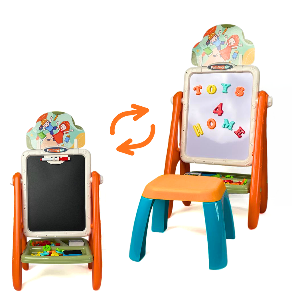 سبورة تعليم مع كرسياستعد لرحلة تعلم ممتعة مع سبورة تعليم مع كرسي! تتميز هذه السبورة بواجهتين بيضاء وسوداء لإتاحة مجال للإبداع والتفاعل. (69*25. 5*36. 5 سم)تأتي مع مجموعة من الأدوات الملهمة، بما في ذلك حروف وأرقام مغناطيسية تسهل على الأطفال تعلم اللغة والأرقام بطريقة شيقة. تمتاز السبورة بأبعاد مثالية للأطفال، وتحتوي على حامل للأقلام والممحاة لتوفير سطح عمل منظم. الكرسي الذي يأتي معها يوفر راحة أثناء الدراسة