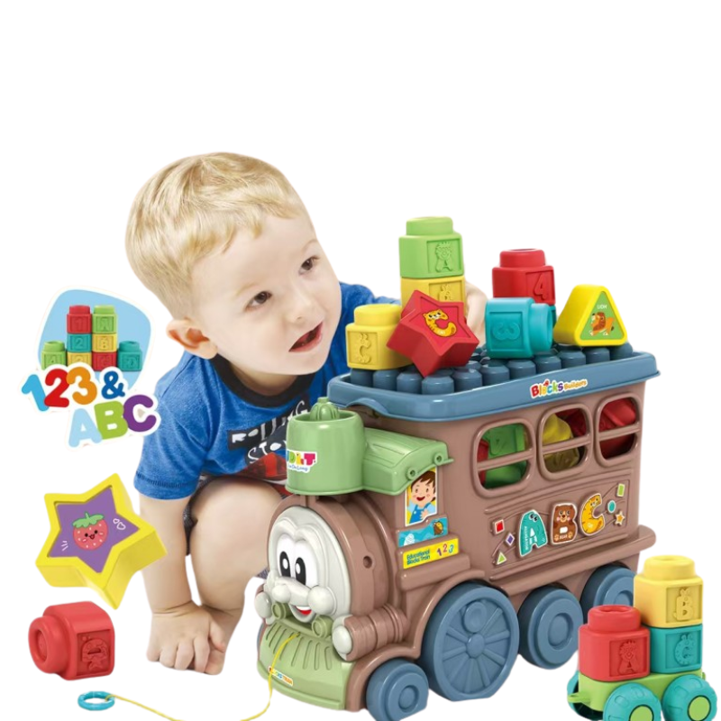 القطار التعليميمع قطع من التركيبات المصنوعة من الرابل الامن على الأطفاللعبة تعليمية و ترفيهية للاطفالالوان رائعة و مميزة