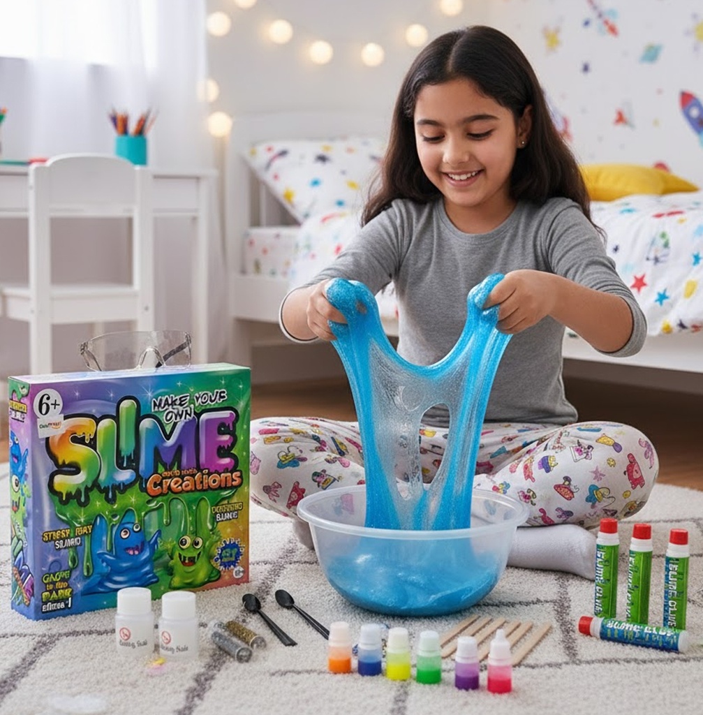 لعبة صنع سلايم يتضمن مجموعة متنوعة من المكونات مثل الغراء، الماء، وألوان . يمكن للاعبين مزج هذه المكونات لإنشاء سلايم بملمس وألوان مختلفة، مما يمنحهم تجربة ممتعة وإبداعية. كما تتضمن اللعبة تحديات وأفكار جديدة لتصنيع سلايم بأشكال فريدة وجذابة