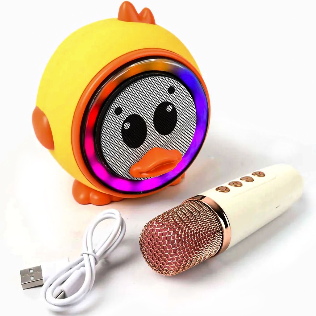 مكبر صوت لاسلكي للغناء (كاريوكي) بتصميم بطة لطيفة يأتي مع مايكروفون لاسلكيمع إضاءة ملونة تتفاعل مع الموسيقىيحتوي مكبر الصوت على منافذ USB و TF Cardسماعه مثالية لإضافة جو من المرح إلى أي مناسبة، سواء كانت حفلة عيد ميلاد أو مجرد لقاء عائلي