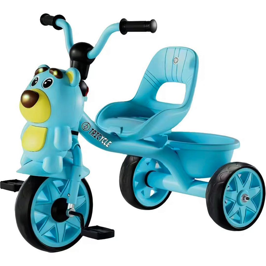 يا هلا! شوفوا هالسيكل الكيوت للصغار! سيكلنا اليديد بتصميم دبدوب أزرق فنتكي، ومقعد مريح وسلة خلفية عشان يشيلون ألعابهم. مثالي لعيالكم الصغار عشان يتعلمون ركوب الدراجة ويتنقلون بسهولة. شكله مميز ويفتح النفس، وهدية ولا أروع لأي طفل يحب الألوان والمرح!