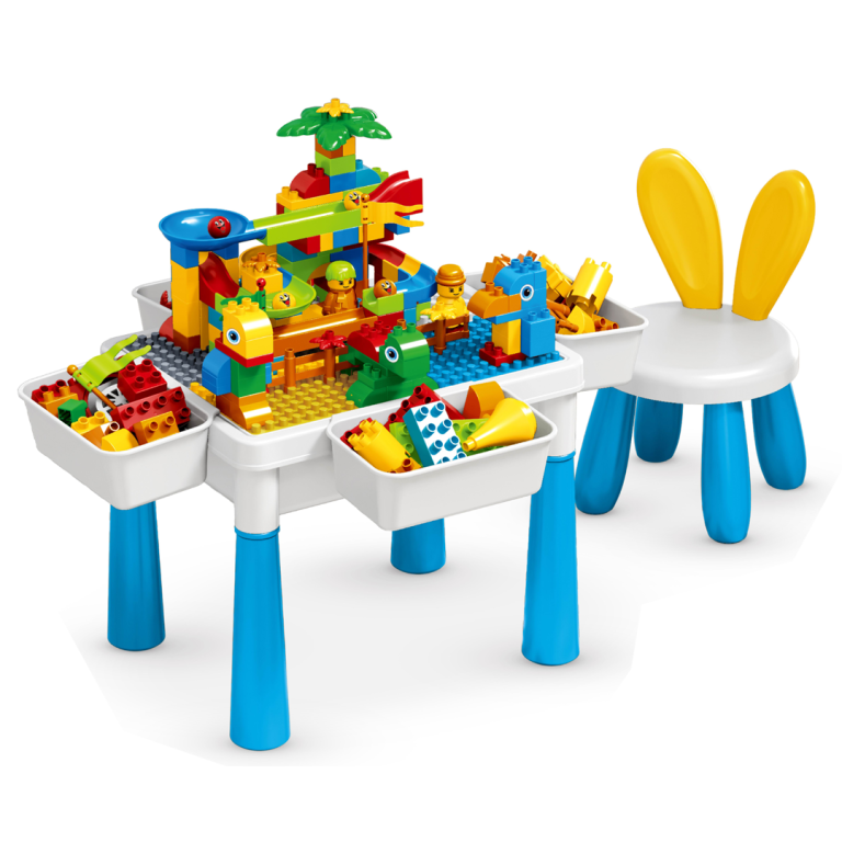طاولة التركيبات 105 قطعة 🧩 كرسي مع مسند ظهر👌🏻تحتوي على طاولة بناء واحدة صناديق تخزين جانبية 📥وهي متنوعة غنية وألوان زاهية🎨تحفز اهتمام الأطفال باللعب.🤶🏻