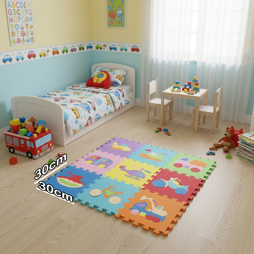 ارضيات اسفنج 30 سم عدد 9 قطع تُعد أرضيات الإسفنج المكونة من 9 قطع بألوان مشرقة وروسمات حلاً مثاليًا لبيئة آمنة للمواليد. بأبعاد 30× 30 سم لكل قطعة توفر هذه الأرضيات الإسفنجية الرطبة راحة فائقة للصغار.