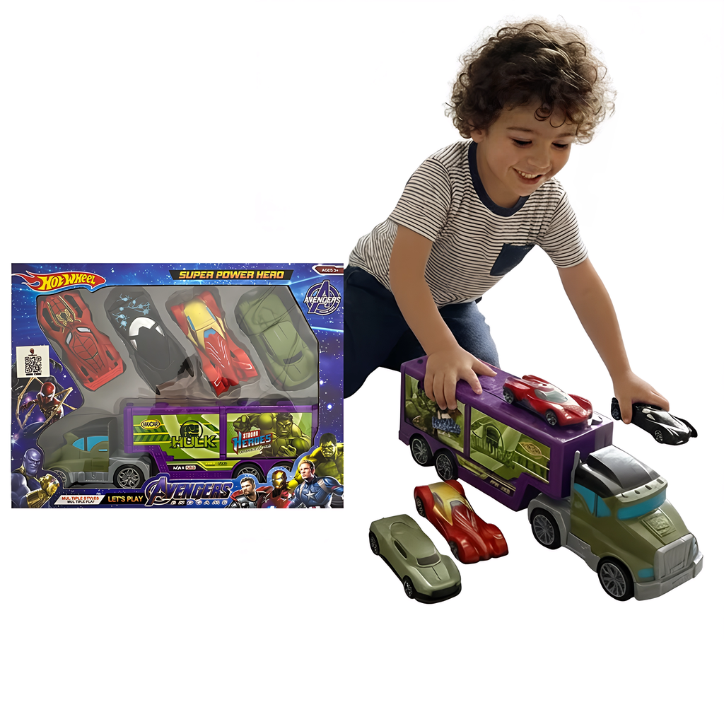 مجموعة سيارات وشاحنات صغيرة الحجم، مصممة بنقوش وألوان شخصيات الأبطال الشهيرة في فريق "المنتقمون" مثل الرجل الحديدي، كابتن أمريكا، هالك، ثور وغيرهم