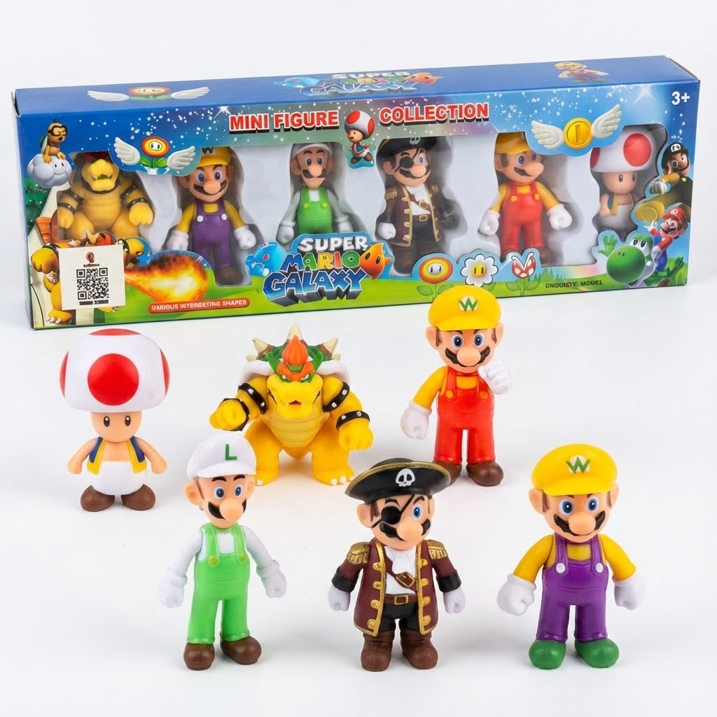 لعبة مجسمات ماريو جلاكسي المميز - شخصيات ثلاثية الأبعاد - موديل أنيق وجميل الشكل - عدد 6 قطع من الشخصيات المميزة لعالم ماريو-ممكن اللعب بها واضافتها كديكور مكتبي