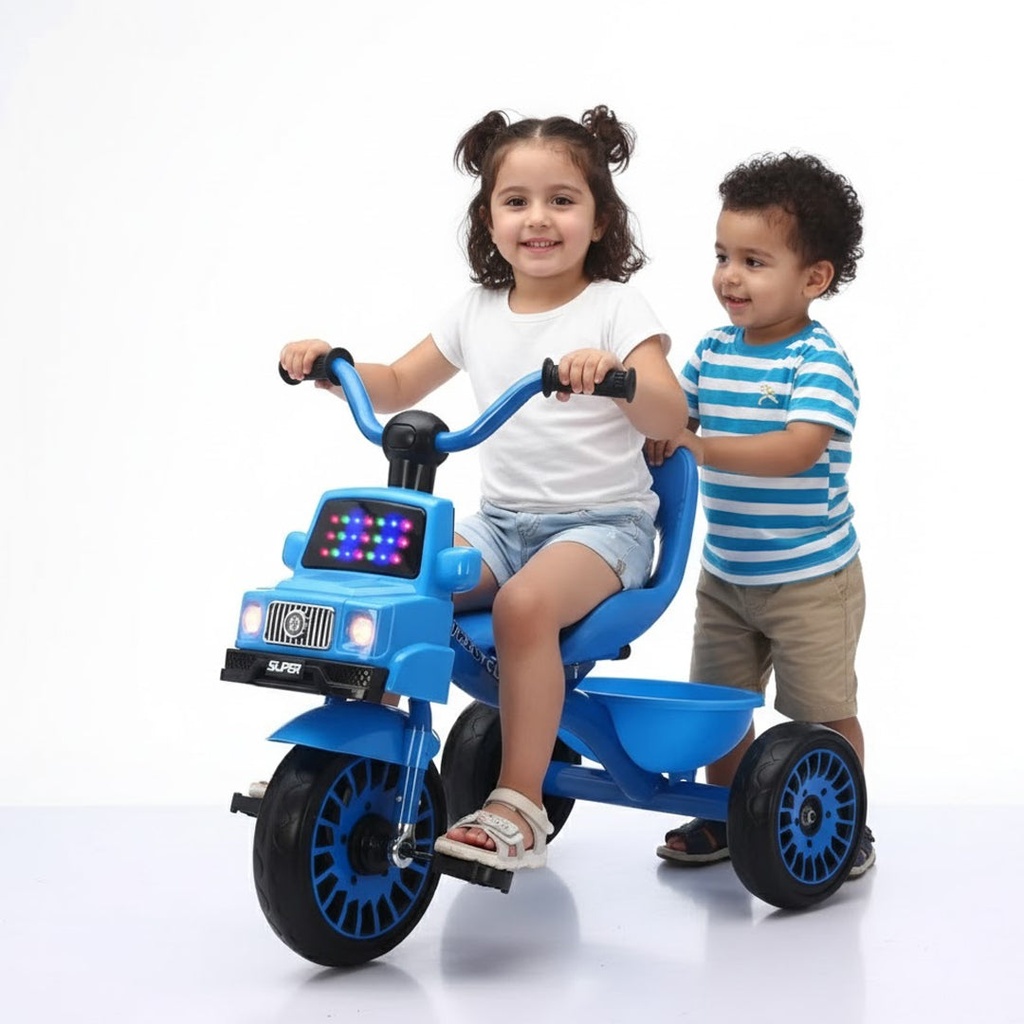 استمتع برحلات ممتعة مع دراجة الاطفال، دراجة ثلاثية العجلات مصممة خصيصًا للأطفال -تتميز بتصميم فريد يشمل مجسم السيارة في مقدمتها