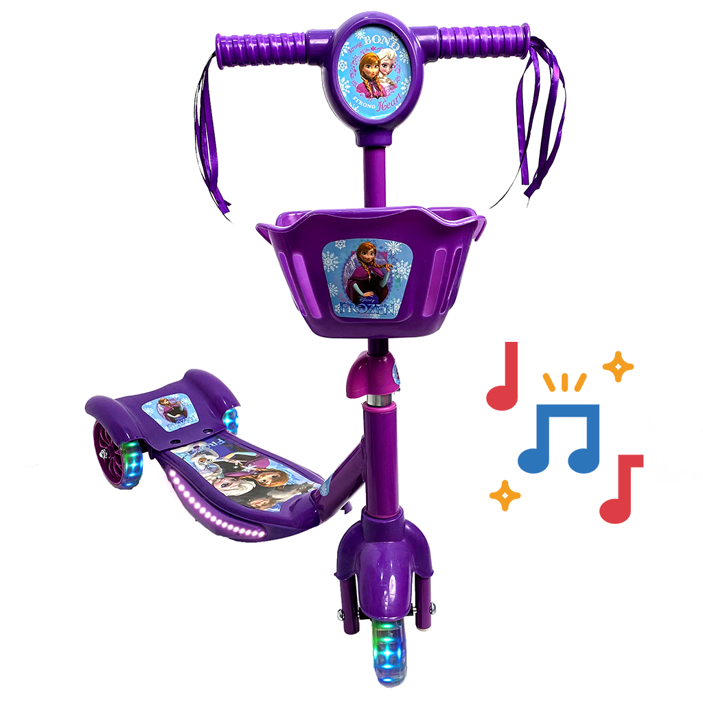 اسكوتر شخصيات ( مناسب لعمر سنه ونصف حتى عمر ثلاث سنوات ونصف ) يأتي بخمسة أشكال واللوان - اللون الازرق بشخصية ميكى ماوس - اللون الاحمر مع الازرق بشخصية سبايدر مان - اللون الوردي الفاتح بشخصيات اميرات ديزنى - اللون الوردي الداكن بشخصية مينى ماوس - اللون البنفسجى بشخصيات فروزين - يأتى مع اضاء قوية فى التايرات والجزء السفلى من الاسكوتر - سلة قوية ومميزة لحفظ الاغراض - موسيقى جميلة تضيف جوا من المرح للتجربة