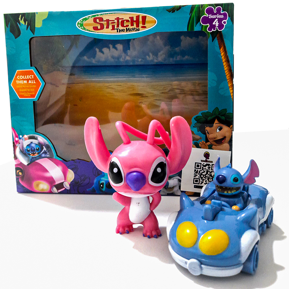 لعبة مجسمات ستيتش - شخصية ثلاثية الأبعاد - عدد 2 قطعة مجسم مع سيارة موديل أنيق وجميل الشكل - شخصية كرتونية مميزة لعالم ستيتش - يمكن اللعب بها وهدية مثالية للاطفال .