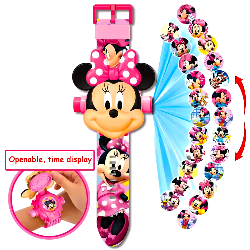 شخصيات محببة: تختار بين سبايدرمان، ميني ماوس، أو هالو كيتي. عرض تفاعلي: الساعة لا تعرض الوقت فقط، بل يمكنها عرض الشخصية المختارة كـ بروجيكتور على الحائط أو السقف! ساعة عملية: للارتداء اليومي، مع خاصية العرض الترفيهي المميز. هدية مثالية: للكبار والصغار، تناسب محبي الهدايا التقنية والمرحة.