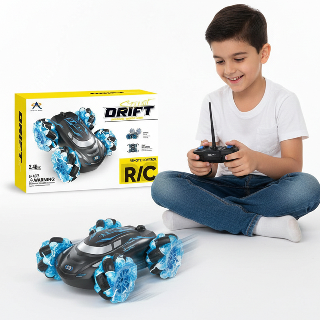 سيارة التحدي والمغامرة: سيارة استعراضات ذكية تعمل بالتحكم عن بعد، تتميز بقدرتها العجيبة على الدوران 360 درجة والقيادة على الوجهين، مما يجعلها لا تتوقف أبداً مهما كانت العوائق. مكونات البوكس: يجي معها جهاز تحكم لاسلكي متطور (2. 4GHz)، بطارية قابلة لإعادة الشحن مع وصلة USB، وتصميم خارجي متين بإضاءة LED مدمجة وعجلات ضخمة مصممة للحركات البهلوانية. إثارة بلا حدود: تنمي مهارات التحكم والتركيز عند الأطفال، وتوفر لهم ساعات من المتعة والحماس من خلال تنفيذ حركات "الدريفت" والمناورات السريعة في أي مكان.