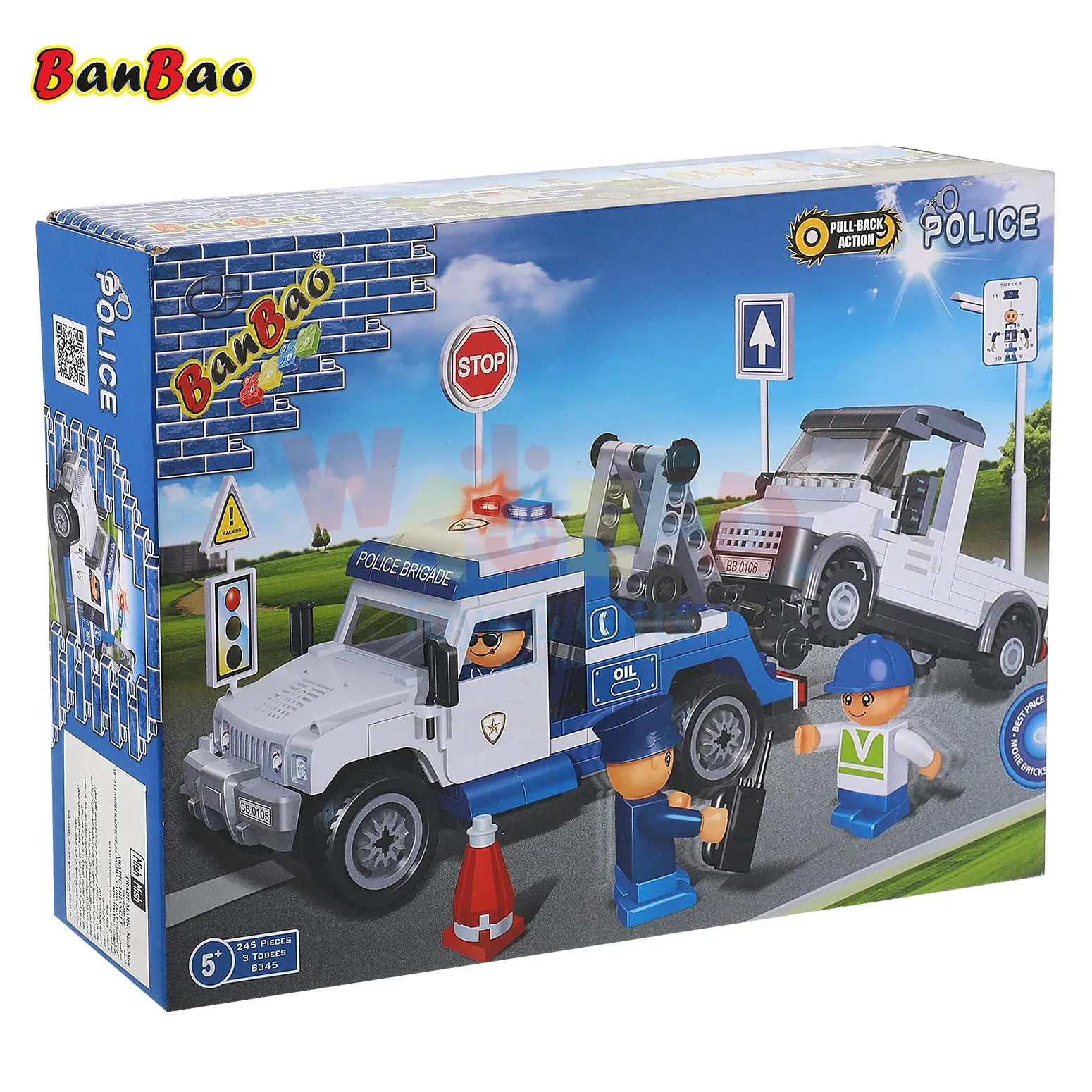 Features a pull-back function for action-packed fun Includes police officers, tow vehicle, signs, and tools Compatible with leading building block brands Enhances coordination and creative play Ideal for children aged 5 and above.