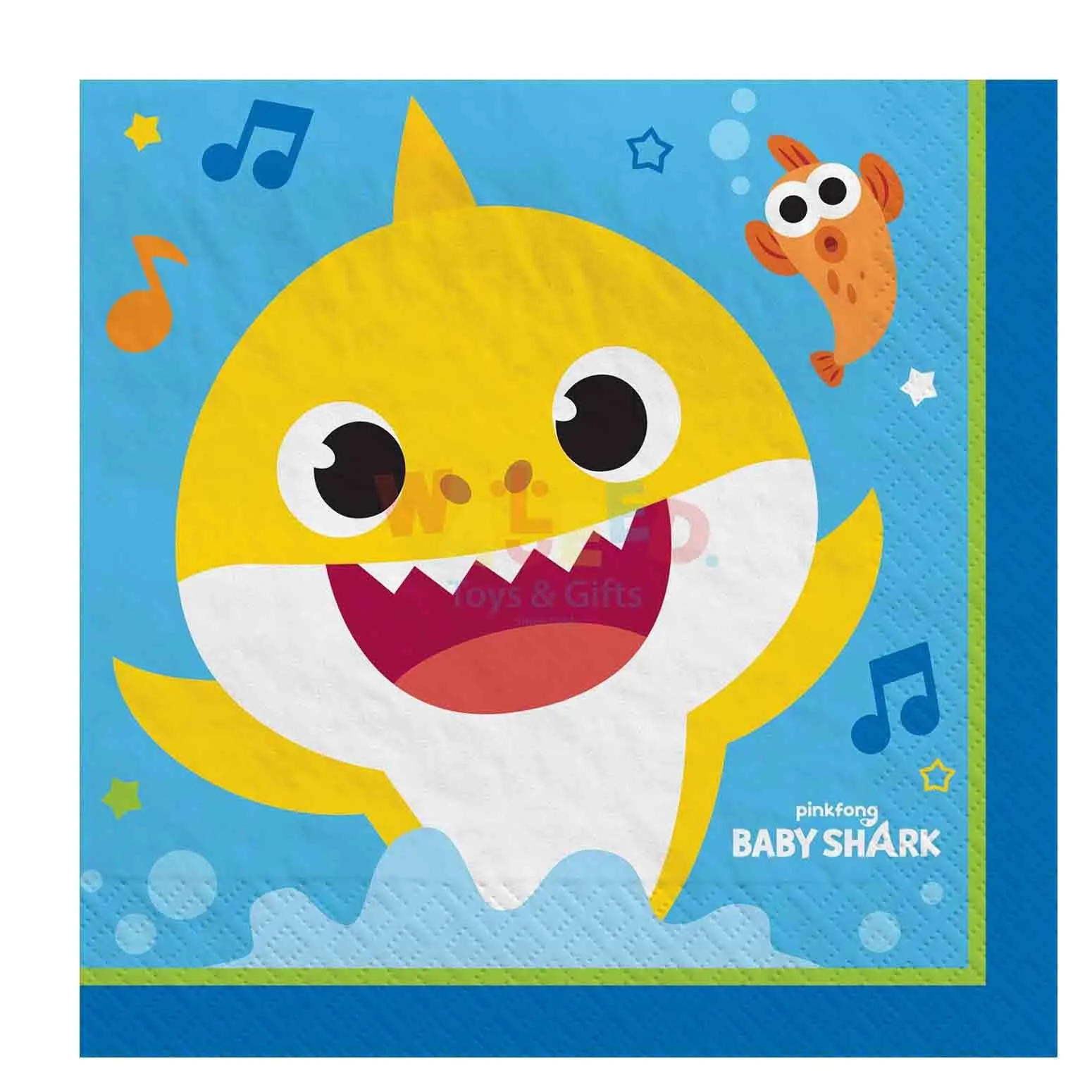 Baby Shark Lunch Napkins (16 pcs) – Fun and colorful Baby Shark-themed napkins for toddlers.