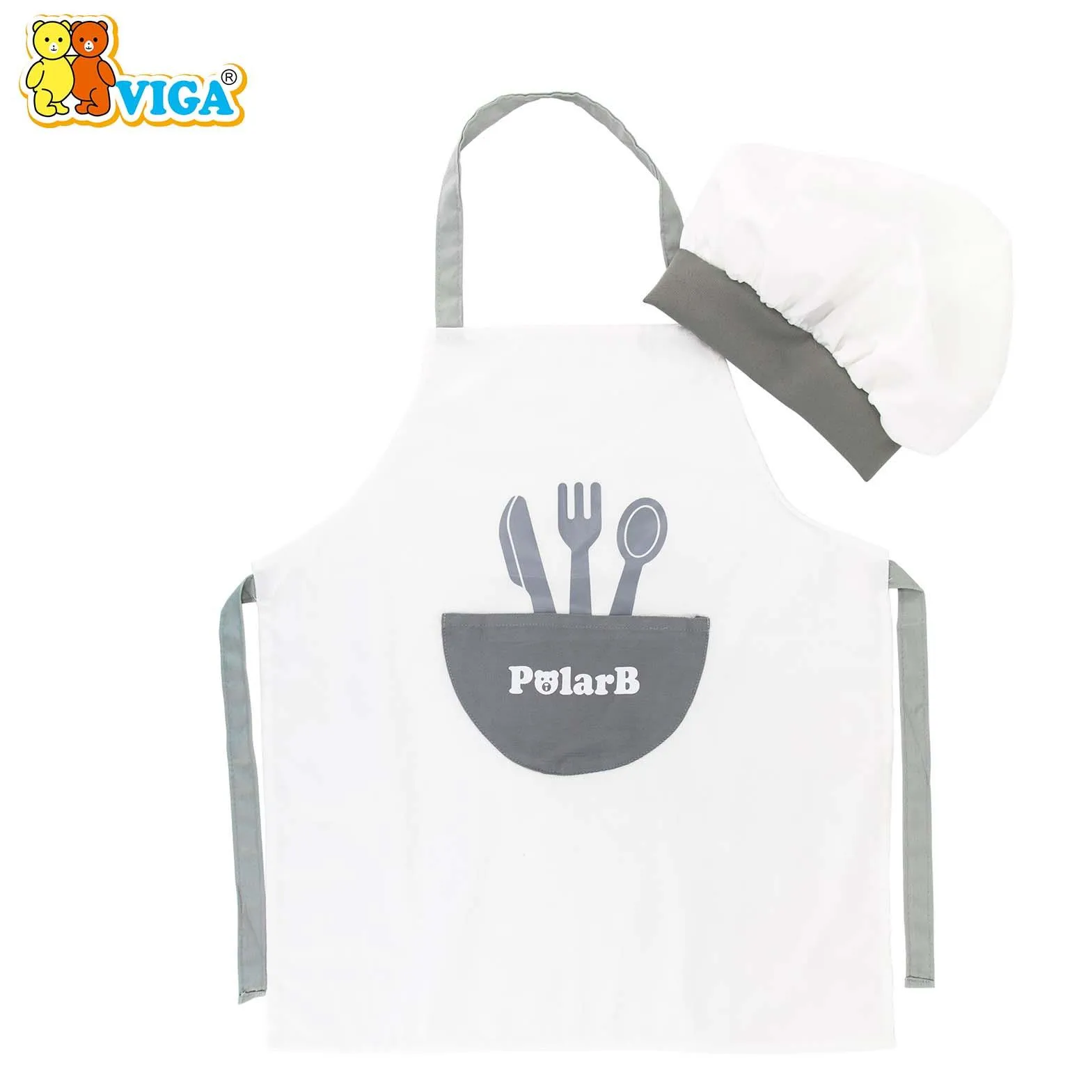 The VIGA Polar B Chef Set includes a classic white-and-grey apron with a matching chef hat — the perfect accessory for any pretend kitchen! Encourage creativity, confidence, and imaginative role play with this stylish cooking outfit for kids. Key Features: Includes apron + chef hat (adjustable size) Neutral colors with utensil print design Soft, breathable fabric – easy to clean Ideal for pretend play, cooking games, and Montessori kitchens Suitable for children aged 3+